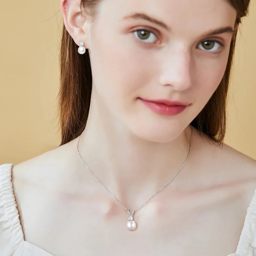 8mm Freshwater Pearl Pendant 0.2/0.9ct Moissanite Jewelry Sets D Color Wedding Jewelry S925 Silver Necklaces Earrings For Women